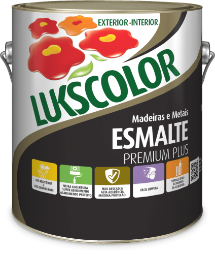 Com o ESMALTE PREMIUM PLUS LUKSCOLOR você protege e decora superfícies de madeira e metal, em geral. Indicado para pintura de portas, janelas, portões, móveis, objetos, etc. Disponível nos acabamentos alto-brilho e acetinado para ambientes externos ou internos e no acabamento fosco para ambientes internos. Produto de alta durabilidade e resistência, fácil limpeza, não descasca e oferece máxima proteção às superfícies. Apresenta ultra rendimento, excelente cobertura e acabamento impecável, excedendo em todos esses quesitos, as normas estabelecidas para a categoria Premium pelo Programa Setorial de Qualidade para Tintas Imobiliárias (PSQ-TI).