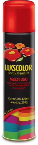 LUKSCOLOR SPRAY PREMIUM MULTIUSO é uma tinta indicada para aplicação em superfícies de metal (aço e ferro), madeira, gesso, cerâmica, pintura de geladeiras, bicicletas, móveis de aço , objetos artesanais e decoração em geral, em ambientes externos ou internos. Possui excelente acabamento, ótima aderência, secagem rápida, durabilidade e resistência ao sol e a chuva.